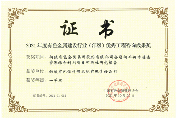 铜陵有色金属集团公司铜冶炼炉渣资源综合利用项目